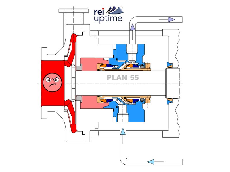 API Plan 55 ist ein kundenspezifisches Drucksperrflüssigkeitssystem für doppelte Gleitringdichtungen, bei dem ein externes Zirkulationssystem eine saubere, unter Druck stehende Sperrflüssigkeit mit einem höheren Druck als die Prozessflüssigkeit liefert.